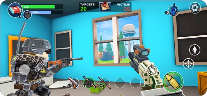 این بازی تنوع اسلحه زیاد و قابلیت شخصیسازی بالایی دارد. علاوه بر این ها، استفاده از دکمه های هدایت شخصیت نیز راحت است و به سرعت به آن عادت خواهید کرد. گیمپلی هم سرگرمکننده و کمی کمدی است. توسعهدهندگان برای تسهیل تیراندازی، حالت auto-shoot را به بازی اضافه کردهاند.