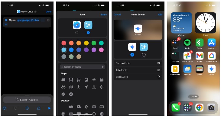 نحوه اضافه کردن شورتکات جمینای به هوم اسکرین آیفون