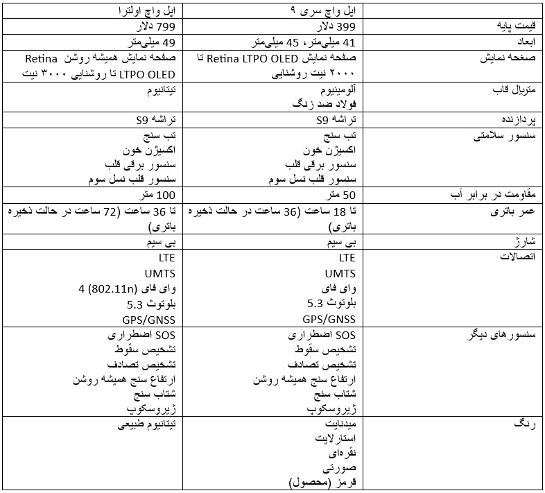 برای اطلاع از ویژگیهای اپل واچ اولترا 2 و اپل واچ سری ۹ به مطالب لینک شده مراجعه کنید.