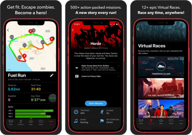 همهی ما این صحنه را در فیلمهای زامبی دیدهایم، یک دونده در شهری خالی از سکنه برای دویدن صبگاهی با هدفونی در گوش حرکت میکند. از آنجایی که در حال گوش دادن به موزیک مورد علاقهاش درهدفون است متوجه نمیشود که زامبیهای کل شهر به دنبال او هستند. شاید خندهدار به نظر بیاید اما در Zombies, Run شما جای آن دونده هستید.