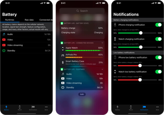 آیا می‌خواهید سطح باتری چندین دستگاه اپل را در گوشی خود مشاهده کنید؟ Battery Life به عنوان بهترین اپلیکیشن باتری آیفون، بستری برای انجام این‌ کار فراهم می‌کند. این برنامه برای نظارت بر میزان باتری، استفاده و الگوی شارژ در آیفون و دستگاه‌های مرتبط با آن مانند اپل واچ، ایده‌آل است.