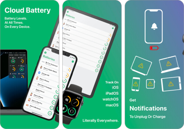 همان‌طور که مشخص است Cloud Batteries از فناوری ابری برای همگام‌سازی همه‌ دستگاه‌های اپل شما استفاده می‌کند، البته تا زمانی‌ که از آیکلود روشن باشد. از این رو می‌توانید همه‌ آن‌ها را در یک مکان نگهداری کنید و میزان باتری آن‌ها را از راه دور در فضای ابری نظارت کنید.