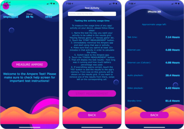 اپلیکیشن Ampere Battery Charging Check به شما این امکان را می‌دهد تا سرعت شارژ باتری خود را بررسی کنید و مشاهده کنید که هر برنامه در آیفون شما چه میزان باتری مصرف می‌کند. همچنین می‌توانید سرعت شارژ باتری خود را مشاهده کنید تا بتوانید شارژرهای مختلف آیفون را آزمایش کنید تا ببینید کدام‌یک سریع‌تر عمل می‌کند.