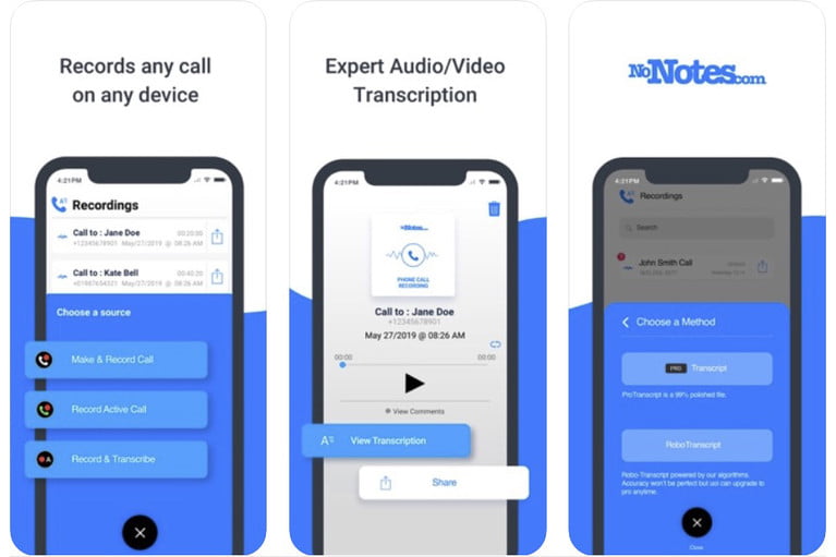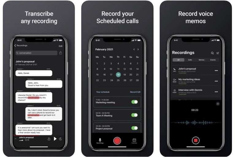 اگر برنامه‌ای می‌خواهید که هم مکالمات شما را ضبط کند و هم آن را تبدیل به متن کند، Call Recording By NoNotes مخصوص شما است. با Call Recording By NoNotes می‌توانید حتی مکالمات طولانی را ضبط و سپس آن‌ها را روی فضای ابری خود بارگذاری کنید و یا مهم‌تر از همه، آن‌ها را به فایل متنی تبدیل کنید. برای استفاده از این برنامه ابتدا شماره تلفن، PIN و آدرس ایمیل گوشی هوشمند خود را وارد اپلیکیشن کنید و سپس وارد حساب کاربری خود شوید. با ساخت حساب کاربری، می‌توانید هم تماس‌های ورودی و هم تماس‌های خروجی خود را ضبط کنید و اگر هم خواستید آن‌ها را برای تبدیل به فایل متنی روی Cloud بارگذاری کنید. این برنامه در واقع مخصوص افرادی است که هر از چندگاهی از ضبط مکالمه استفاده می‌کنند، چرا که به شما اجازه می‌دهد ماهانه تنها 20 دقیقه از تماس‌ها را ضبط کنید.