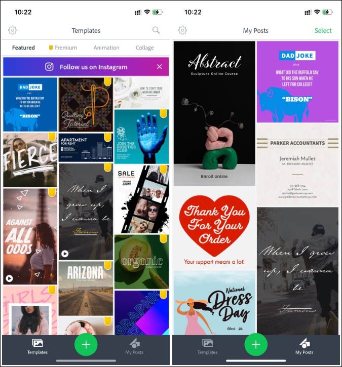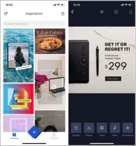 شرکت ادوبی، Adobe Spark Post را مخصوصا برای رقابت با برنامه کانوا روانه بازار کرده است. با این حال، باید اعتراف کرد که ادوبی قابلیتها و قالبهای بسیار خوبی برای طراحی گرافیک دارد، اما ممکن است بعضی از کاربران نسبت به حالت اسکرول افقی رابط کاربری آن علاقهای نشان ندهند؛ برای رفتن به بخشهای Lifestyle، Business، School، Collage، Travel، Food و … باید صفحه را به چپ یا راست بکشید که کمی عجیب به نظر میرسد. کانوا از این نظر در مقایسه با اسپارک پست، رابط کاربری مناسبتری دارد. با این حال، هر دو به عنوان بهترین اپلیکیشن طراحی و گرافیک برای آیفون و آیپد کاربرد دارند.