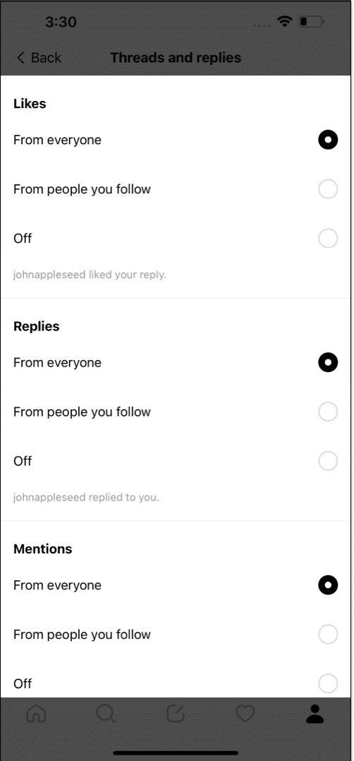 - From everyone: تمامی نوتیفیکیشنها در تردز را دریافت میکنید.