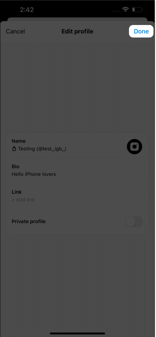 - بر روی گزینه Edit Profile ضربه بزنید.
