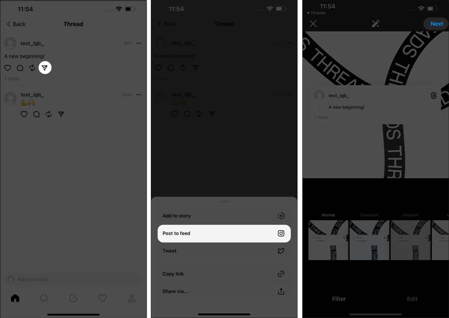 - پس از ضربه زدن بر روی Next، روش معمول برای پست کردن یک موضوع در اینستاگرام را طی کنید.