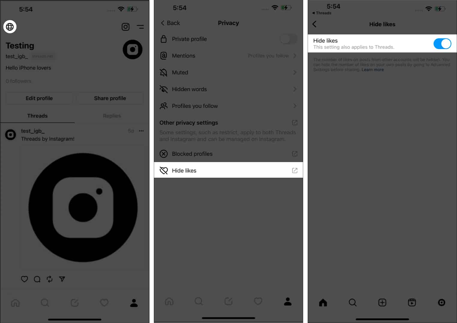 - در این لحظه به منوی Hide likes وارد میشوید.