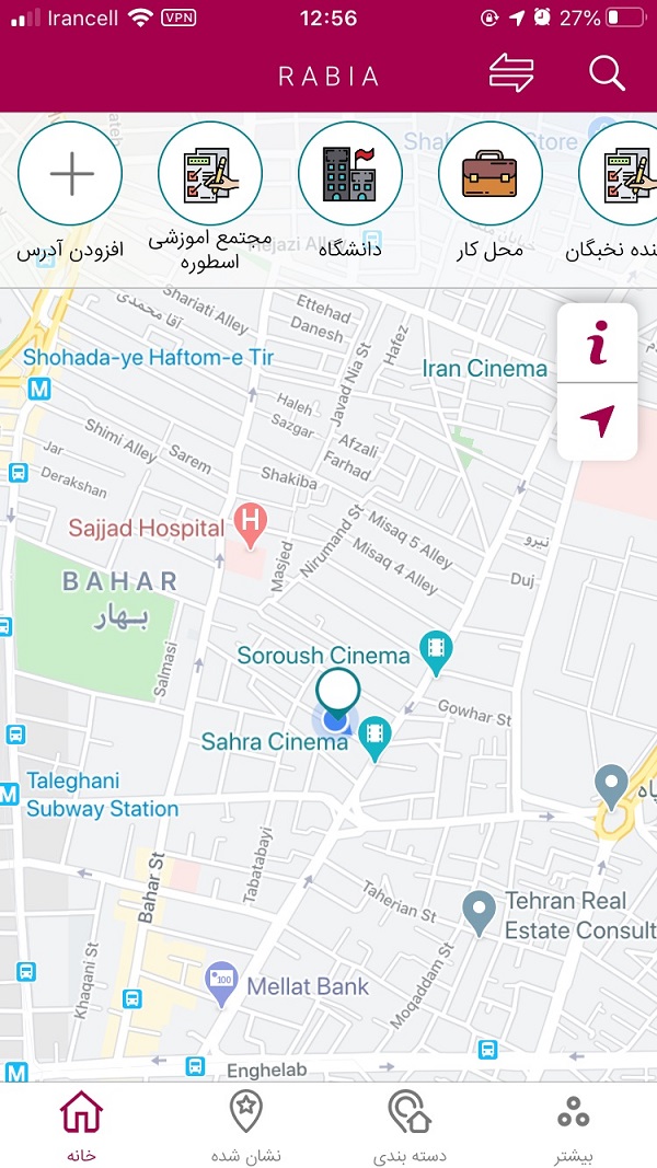 رابیا صرفا یک اپلیکیشن مسیریاب ایرانی نیست. با رابیا می‌توانید آدرس‌های شخصی خود را در یک‌جا ذخیره کنید و همه‌ را یک‌جا داشته باشید. شما می‌توانید آدرس و اطلاعات تماس افراد را در این برنامه ذخیره کنید و برای خود یک دفترچه آدرس خصوصی بسازید.