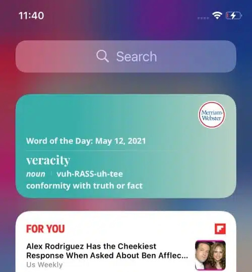 اگر به دنبال یادگیری لغات جدید هستید با ویجت دیکشنری Merriam-Webster هر روز یک کلمه جدید را یاد بگیرید. ویجت این دیکشنری امریکایی یک افزونه اپل واچ و جستجوی صوتی نیز دارد.