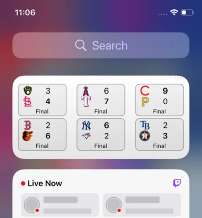 این ویجت به شما امکان میدهد تا ورزشهای مورد علاقه خود را در صفحه اصلی آیفون پیگیری کنید. مواردی مانند اخبار، نتایج زنده بازیها یا هشدارهای ورزشهای مهم مانند NFL، NBA، تنیس، گلف و غیره قابل مشاهده است. این ویجت طراحی زیبایی داشته و به خوبی روی هوم اسکرین شما قرار میگیرد.