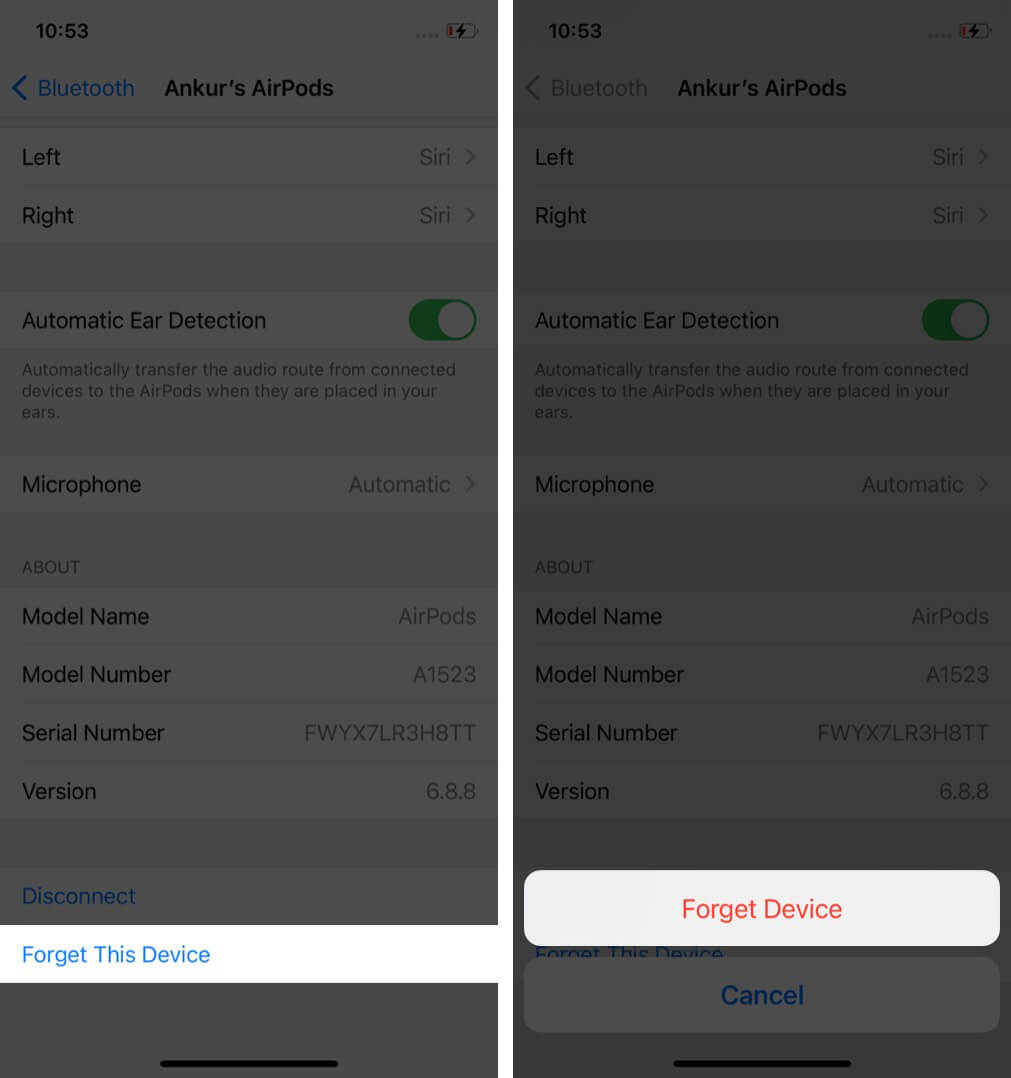 • حال روی Forget This Device و سپس Forget Device ضربه بزنید.