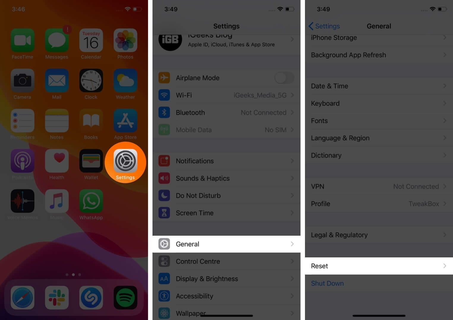 پس از ریست کردن تنظیمات شبکه، عموما مشکلات مرتبط با شبکه رفع می‌شود. قبل از ادامه این را مد نظر داشته باشید که با این کار، تمام شبکه‌های Wi-Fi ذخیره شده، دستگاه‌‌های بلوتوث، تنظیمات VPN و سایر تنظیمات به حالت پیش فرض درخواهد آورد. با این حال موارد شخصی مانند عکس‌ها و فیلم‌ها، موسیقی و غیره تغییری نمی‌کنند و به حالت خود باقی می‌مانند.