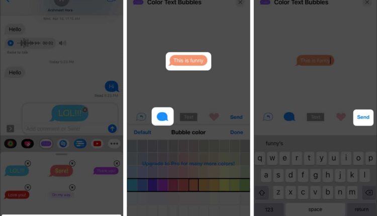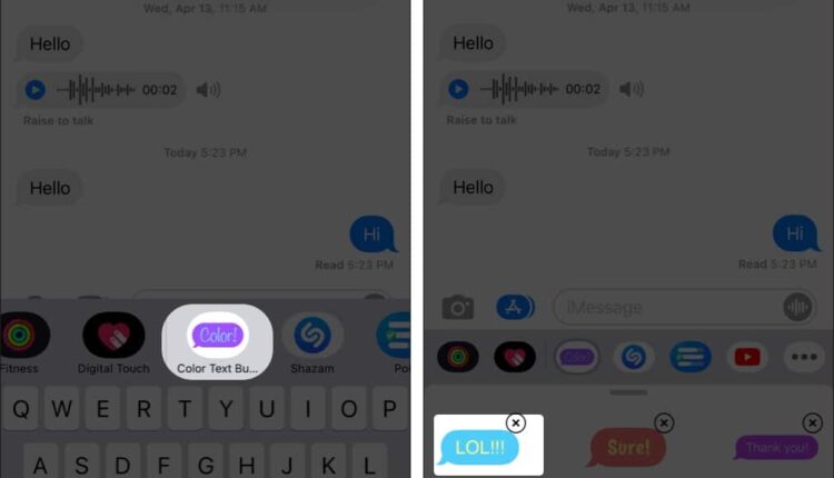 4- درست بالای کیبورد، در ردیف اپ ها، Color Text Bubbles on iMessage را انتخاب کنید. با انتخاب این سرویس، آپشن های مختلفی برای سفارشی سازی پیام در اختیار شما قرار می گیرد؛