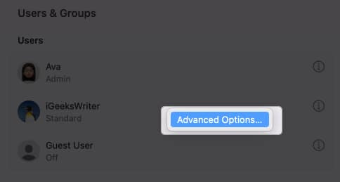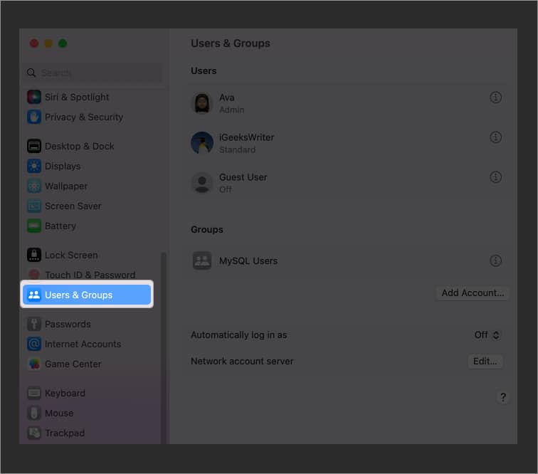2. از نوار کناری Users & Groups را انتخاب کنید.