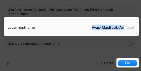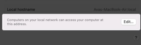 به‌طو پیش‌فرض، مک نام لوکال هاست را با نام رایانه تنظیم می‌کند. به‌عنوان مثال Avas-MacBook-Air.local، اما بهتر است آن‌را به یک نام خاص تغییر دهید.