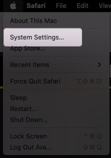1. روی منو Apple و سپس Choose System Settings کلیک کنید.