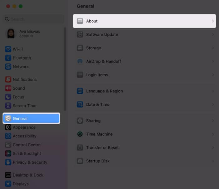 1. ابتدا به منوی Apple، System Settings و General بروید.