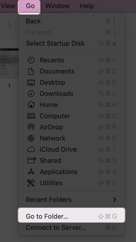 3. Finder را باز کنید و Go را انتخاب کنید.