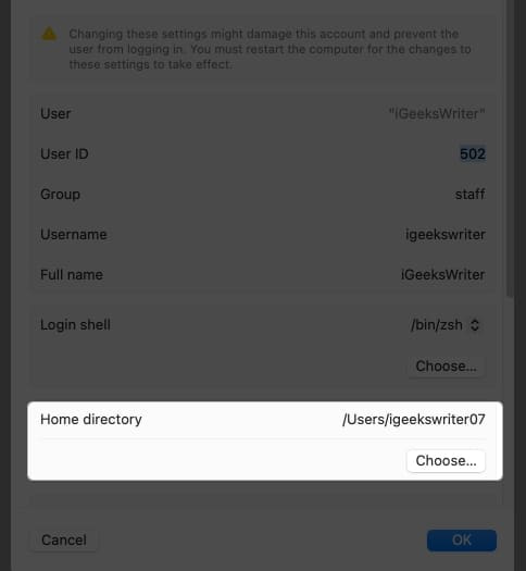 تغییر نام اصلی مستقیم، قبل از تغییر نام کاربری برای مرتبط نگه داشتن موارد ضروری است. اگر اسناد و سایر داده‌های حساب کاربری در پوشه اصلی شما ذخیره شود، ممکن است باعث ایجاد مشکل گردد.
