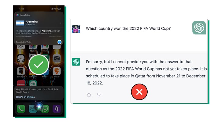 دقیق بودن پاسخ‌های سیری و ChatGPT