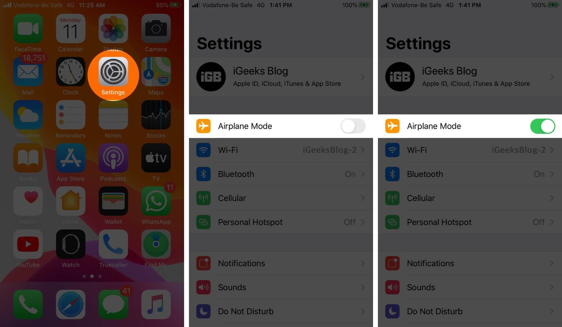- از طرف دیگر میتوانید در آیفون خود به Settings رفته و زبانه Airplane Mode را روشن کنید.