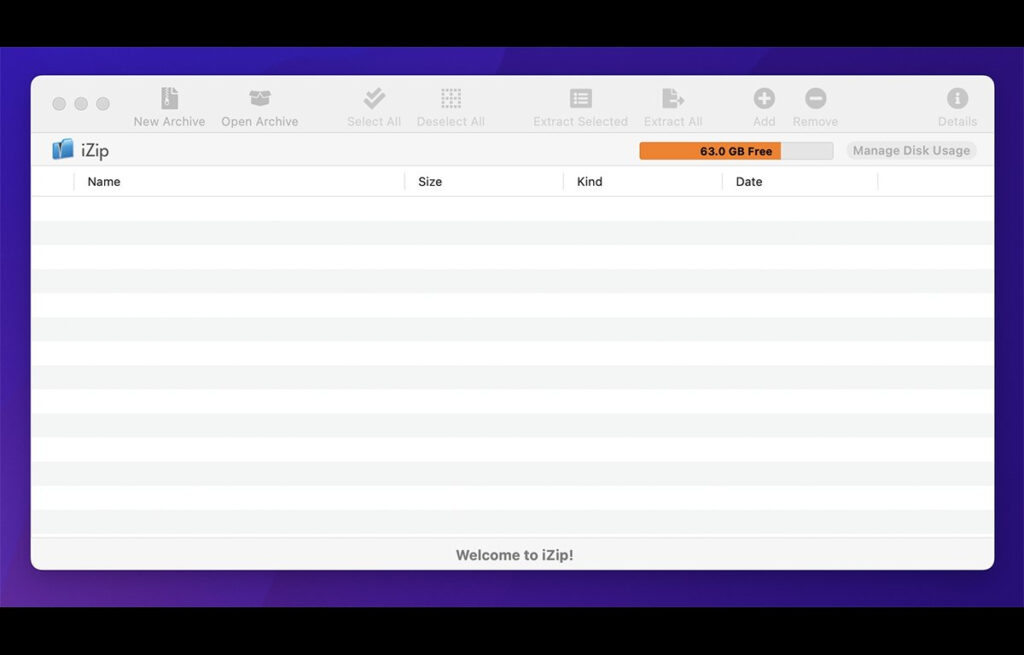 iZip یک برنامه رایگان برای ساخت آرشیو است، اما امکان ویرایش آن وجود ندارد. رابط کاربری خوبی دارد، اما نه به سادگی و روانی BetterZip. به عنوان مثال در نسخه رایگان نمیتوانید فایلها را به طور مستقیم به پنجرههای آرشیو بکشید. در عوض باید روی دکمه Add کلیک کنید و سپس آن را به پنجره دومی که باز میشود بکشید. آرشیوهای جدید در نسخه رایگان یه یک مورد محدود است، مگر اینکه برنامه را به نسخه پولی ارتقاء دهید.