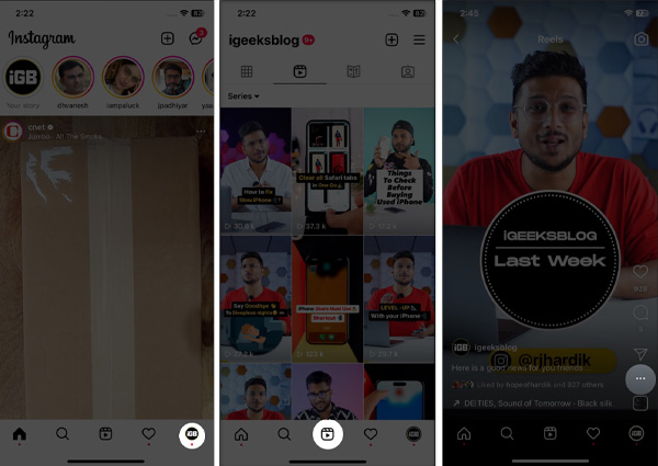 - ریلزی که میخواهید کامنتهای آن را خاموش کنید انتخاب کنید.