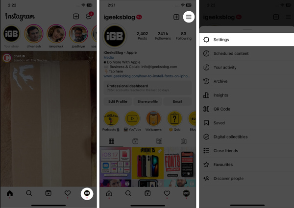 - اینستاگرام را در آیفون خود اجرا کنید و سپس بر روی پروفایل خود ضربه بزنید.