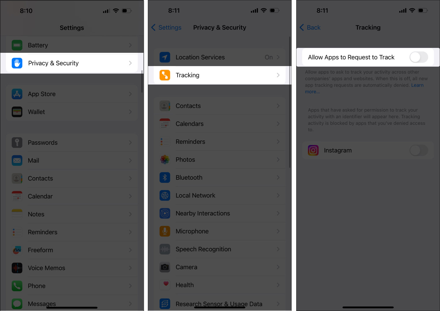 - به ترتیب بر روی Privacy و Tracking ضربه بزنید.