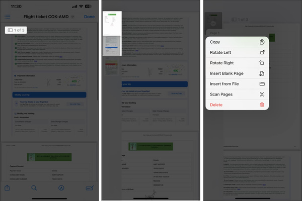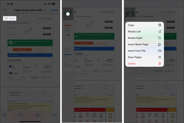 - پس از تنظیم مجدد روی نماد سه نقطه ضربه بزنید و Rotate Left یا Rotate Right را برای چرخش صفحه انتخاب کنید.
