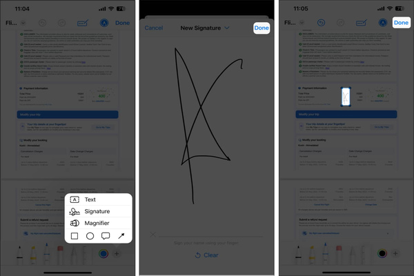 - امضای خود را رها کرده و روی Done ضربه بزنید.