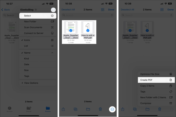 - روی Select کلیک کرده و PDFها را برای ادغام انتخاب کنید.