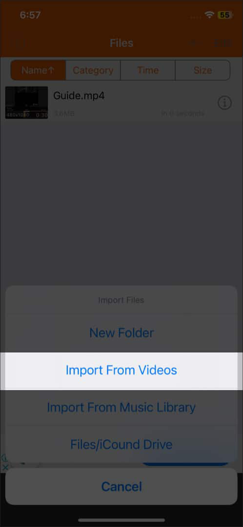 - گزینه Import from Videos را انتخاب کنید. اجازه انجام این کار را صادر کنید.