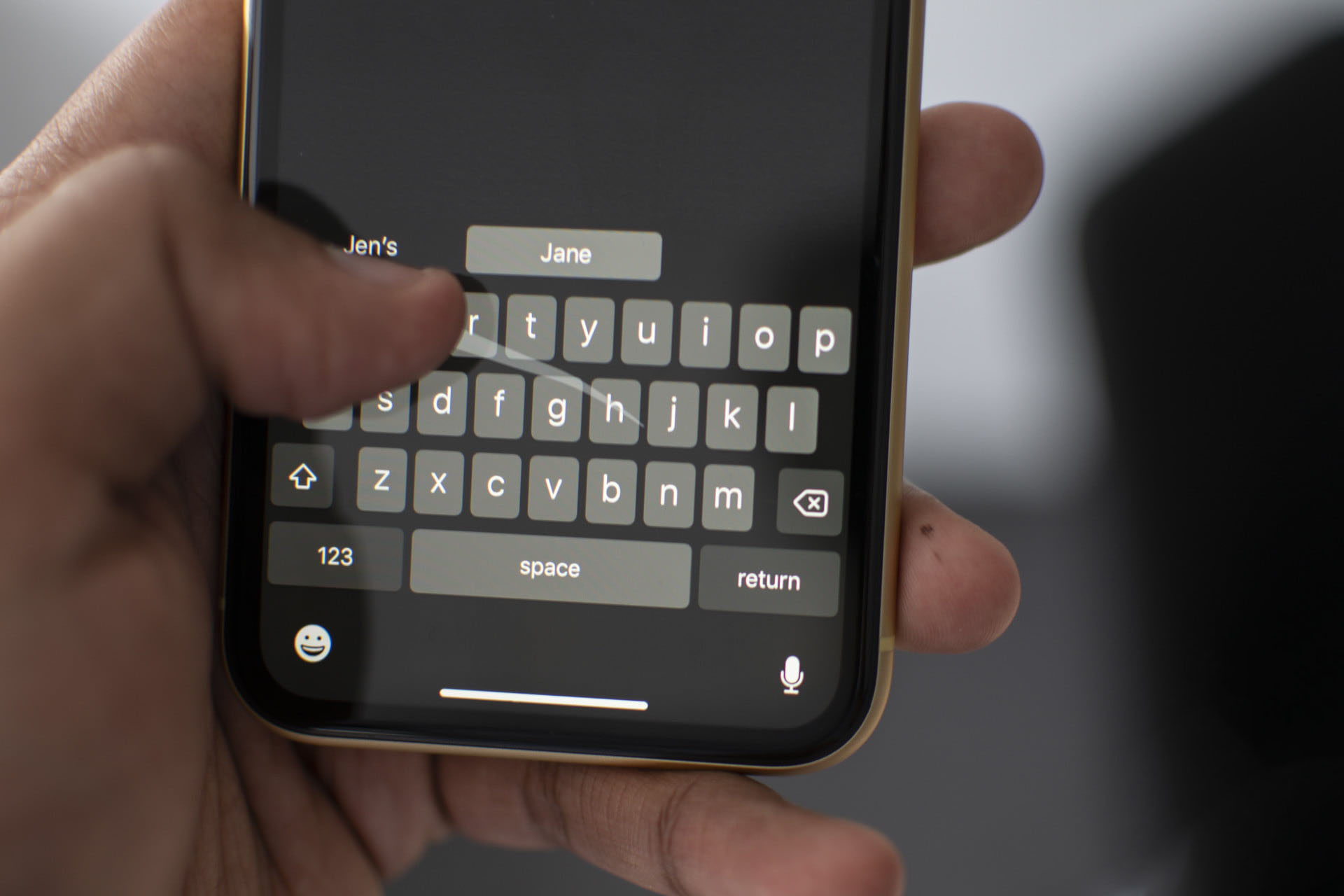 اگر میخواهید کلمهای را در وسط جمله اضافه کنید، کافیست در جمله روی مکانی که میخواهید، تب کنید. اما اگر میخواهید سریعتر این کار را انجام دهید، نوار فاصله را فشار داده و نگه دارید. سپس انگشت خود را روی صفحه کلید حرکت دهید تا دقیقا به مکانی در جمله که میخواهید تصحیح کنید یا کلمهای را اضافه کنید برسید.