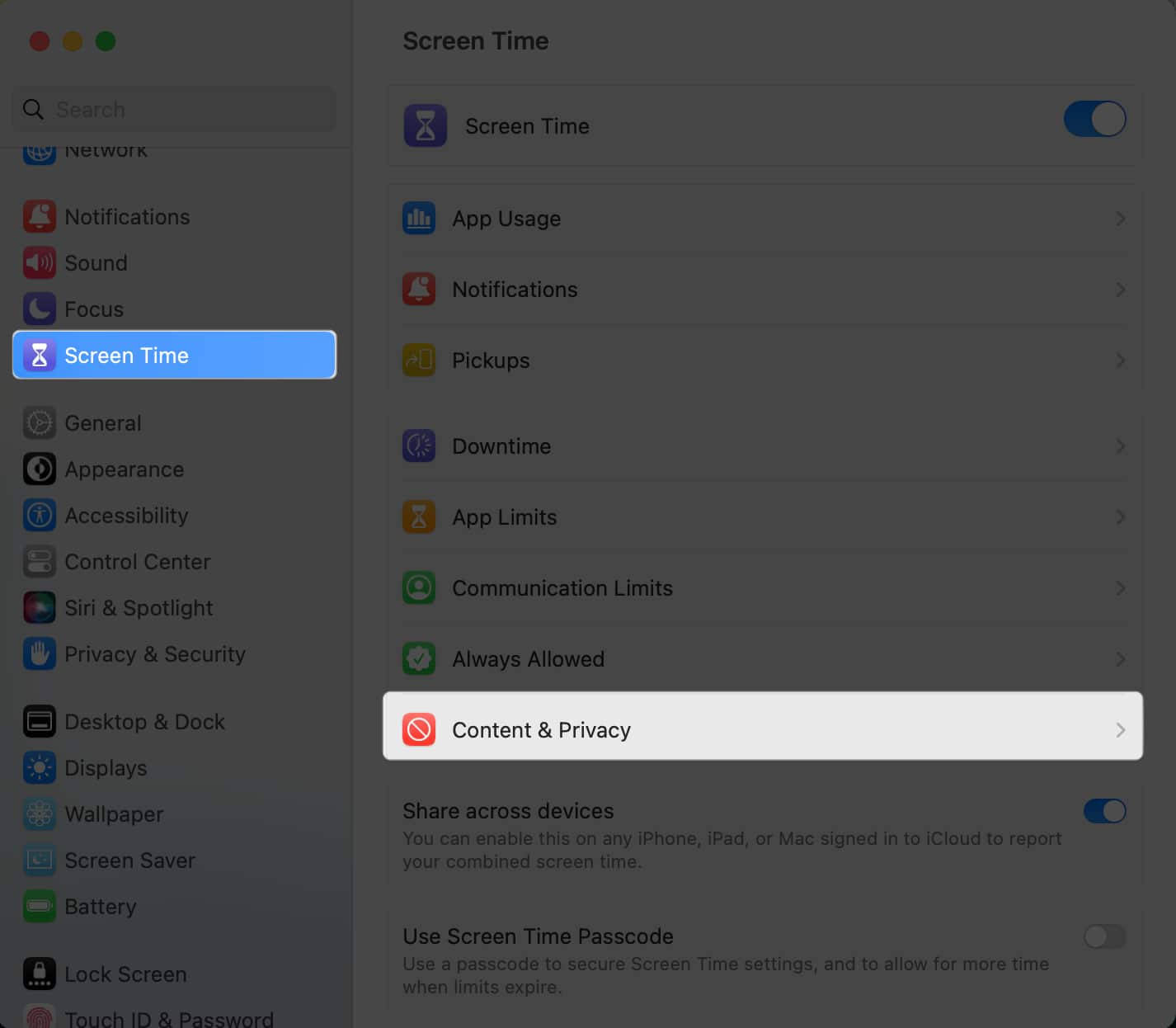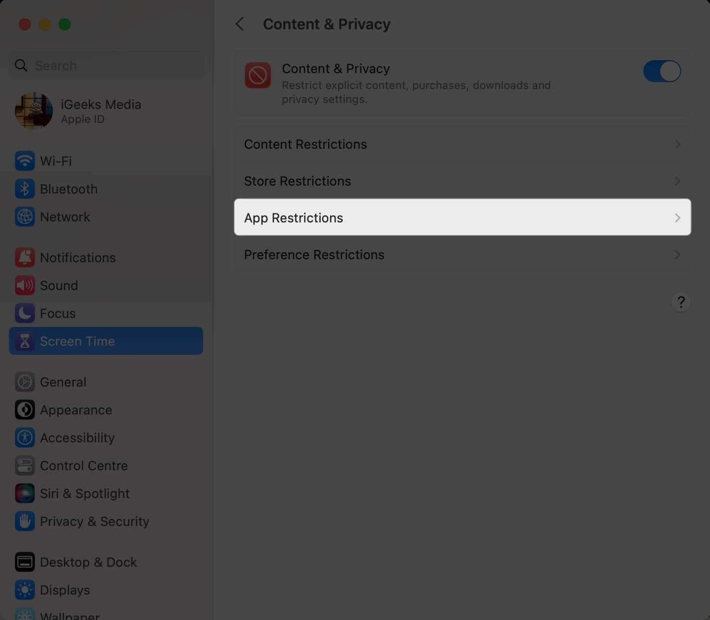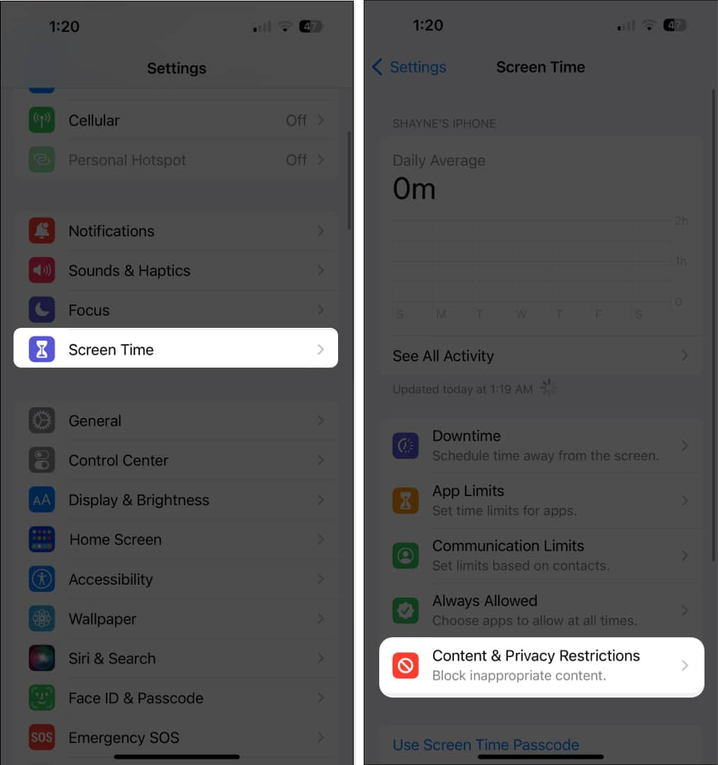 2. حال Content & Privacy Restrictions را انتخاب کنید.