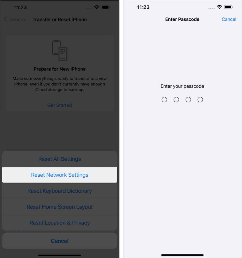 1. روی Reset Network Settings ضربه بزنید و پسورد خود را وارد کنید.