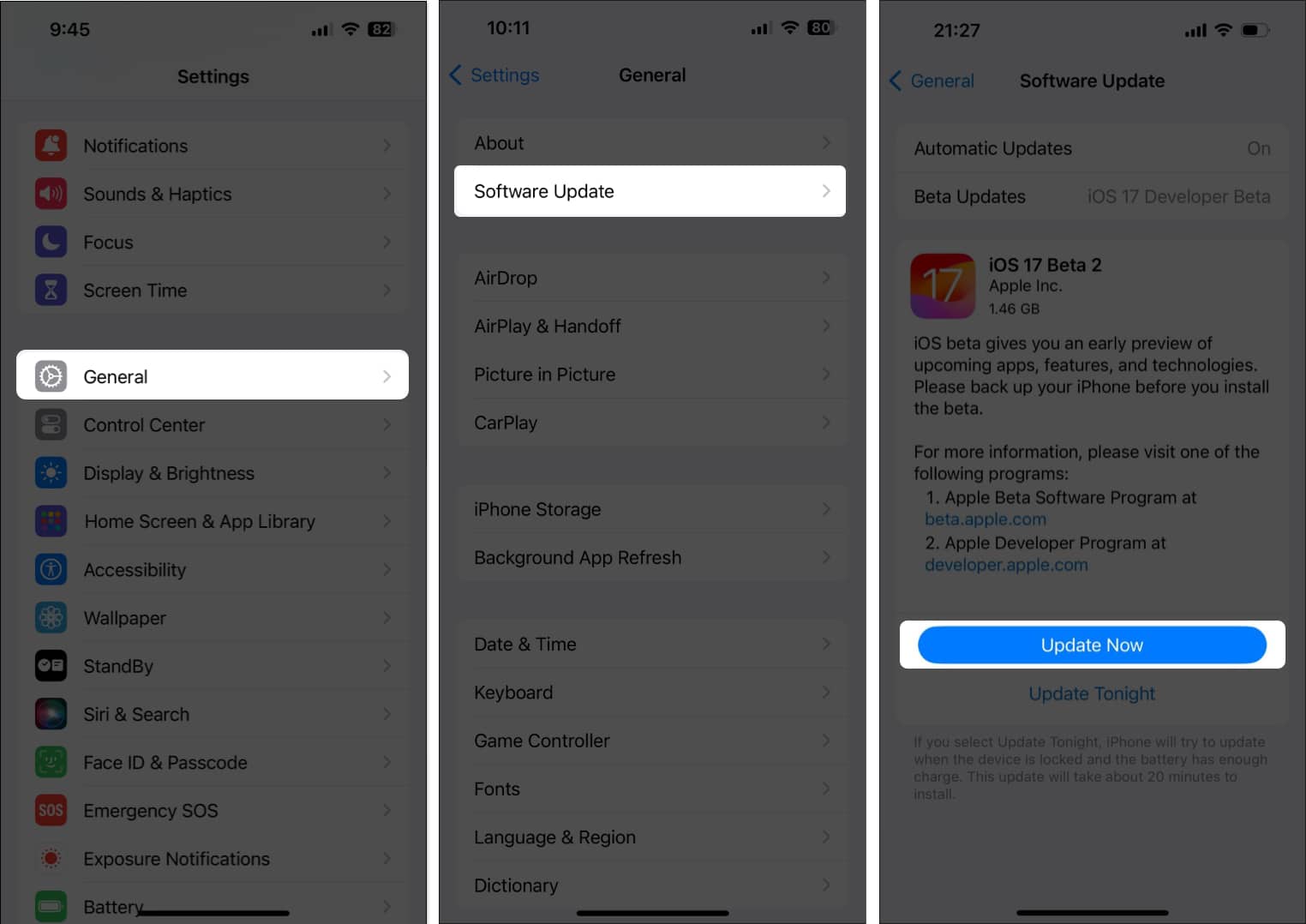 - پس از رفتن به تنظیمات دستگاه، بر روی General کلیک کنید و Software Update را انتخاب کنید.