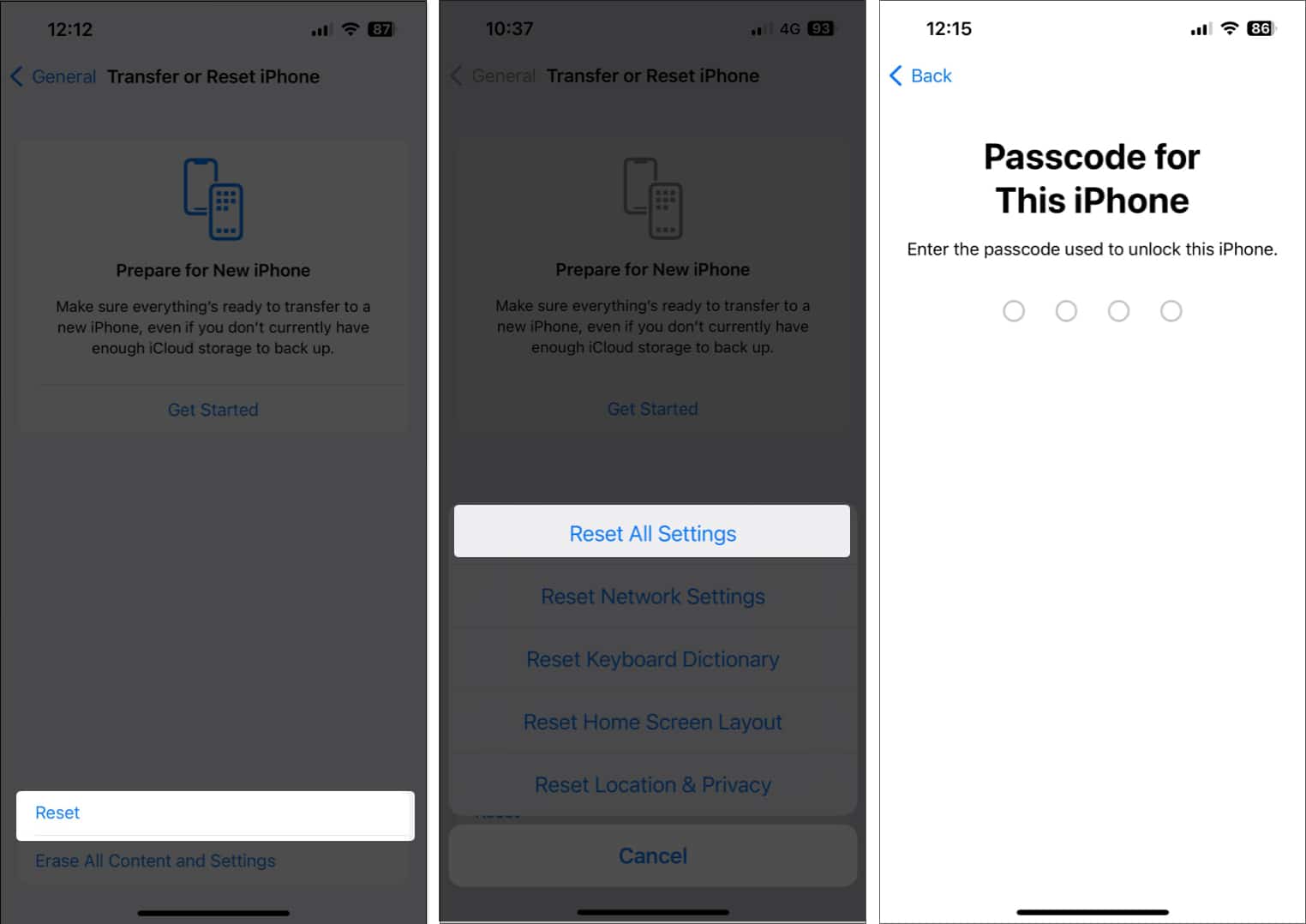اگر اخیراً تغییری در بخش تنظیمات آیفون خود ایجاد کردهاید، ممکن است با قابلیت Screen Distance تداخل پیدا کرده باشد. بنابراین، بهتر است تمامی تنظیمات آیفون را ریست کنید و به حالت اول برگردانید.
