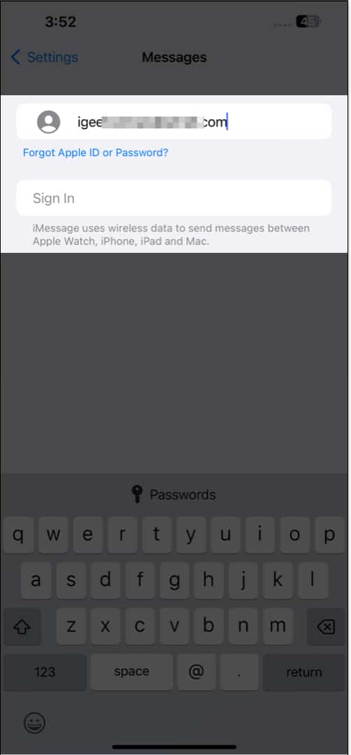 - بر روی Use your Apple ID for iMessage ضربه بزنید و Sign In را انتخاب کنید.