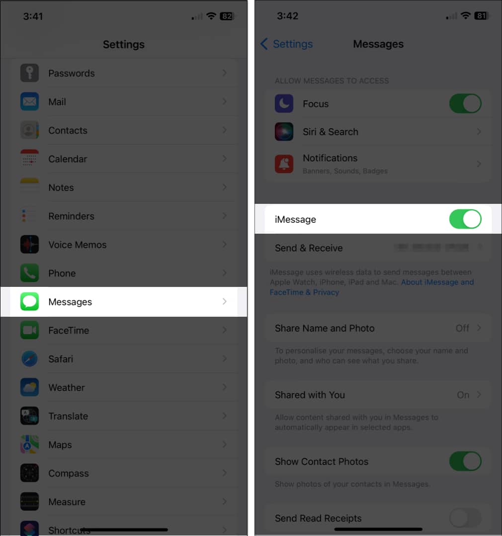 - از روشن بودن دکمه iMessage مطمئن شوید.