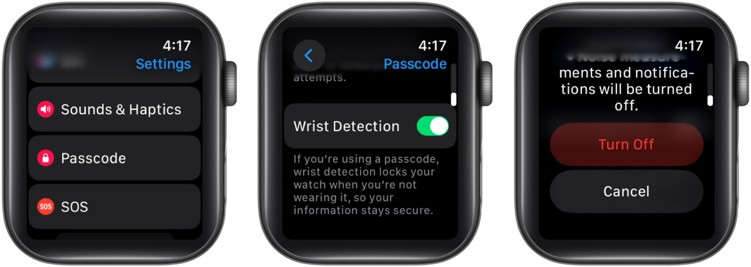 - به پایین و روی Wrist Detection رفته و Turn Off را انتخاب کنید.