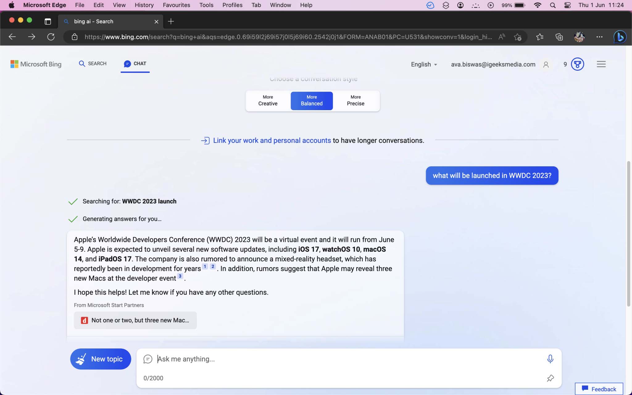 بینگ در ارائه پاسخهای واقعی و دقیق مشهور است. بنابراین، برای انجام کار تحقیقاتی و پژوهشی در مورد موضوعات پیچیده، بهتر است از بینگ کمک بگیرید. این هوش مصنوعی اطلاعات را جمعآوری میکند و با ابتکار خود بازنویسی میکند.