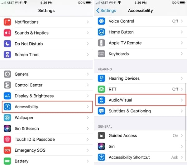 به قسمت Hearing رفته و Audio/Visual را انتخاب کنید.
