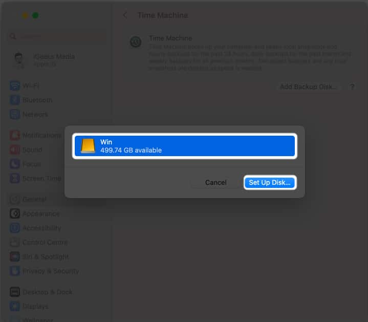 - دیسک خود را انتخاب کنید و روی Set Up Disk کلیک کنید.