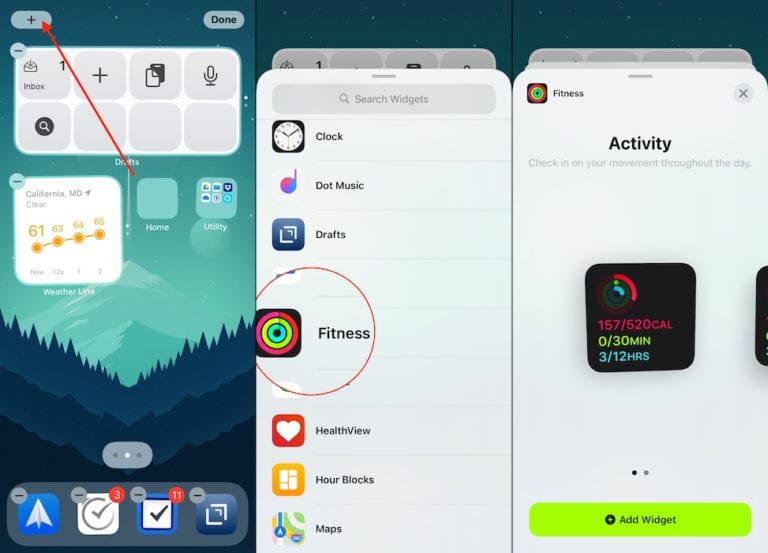 اکنون که ویجت‌های جدید را نصب کردید٬ شما قادر خواهید بود آن‌ها را به هوم اسکرین آیفون خود بیافزایید. برای این کار کافیست مراحل زیر را دنبال کنید: