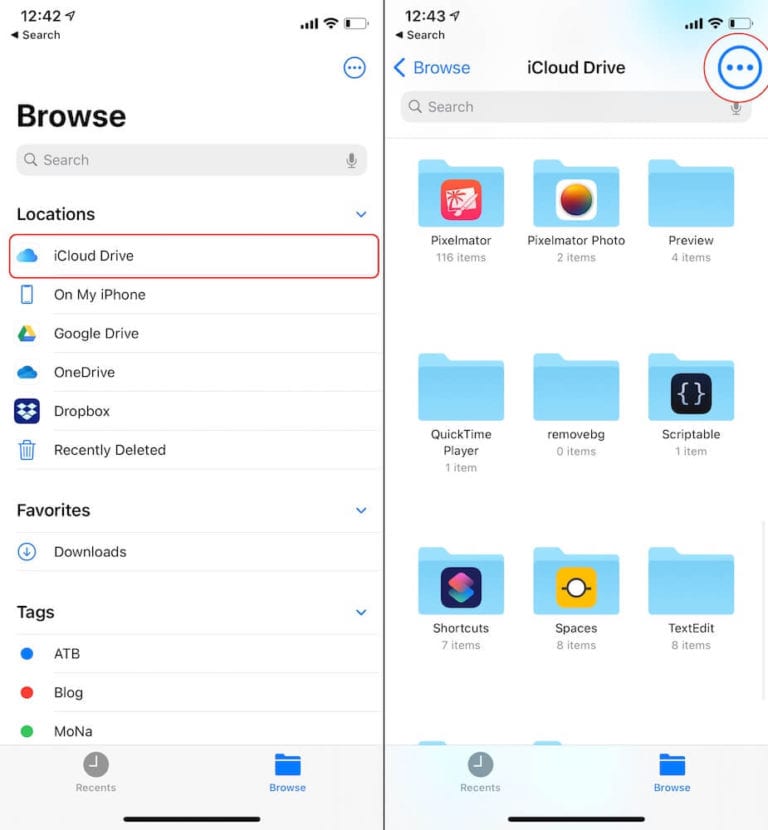 3. گزینه‌ی iCloud Drive را در زیر Locations بفشارید.