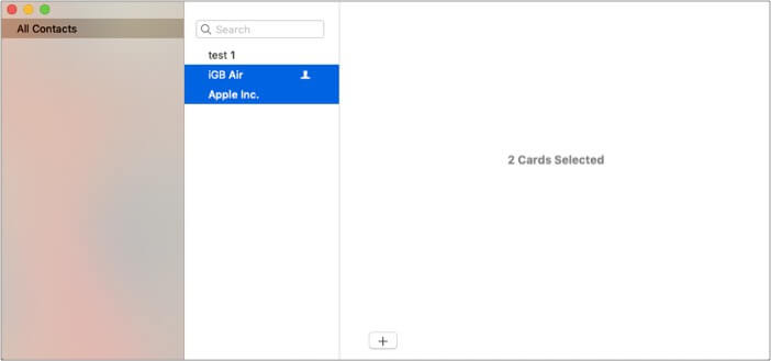 - Contacts مک خود را باز و مخاطبین مورد نظر خود را انتخاب کنید؛