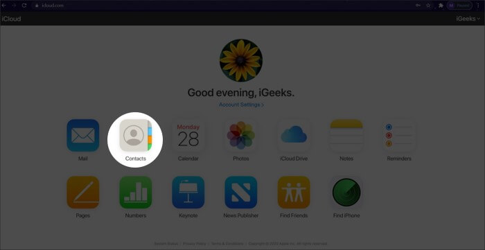 - مرورگر Chrome یا مرورگر دلخواه خود را روی سیستم باز کنید و به icloud.com بروید. از آنجا نام کاربری و رمز عبور خود را وارد کنید تا وارد حساب خود شوید؛